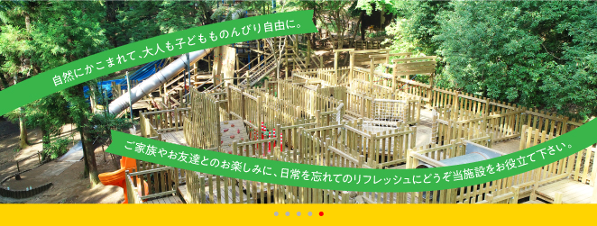 人気の遊戯施設アドベンチャーキッズの森やバーベキューなど、